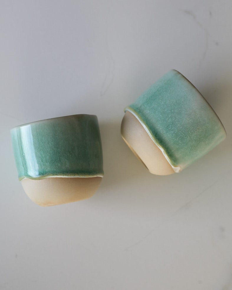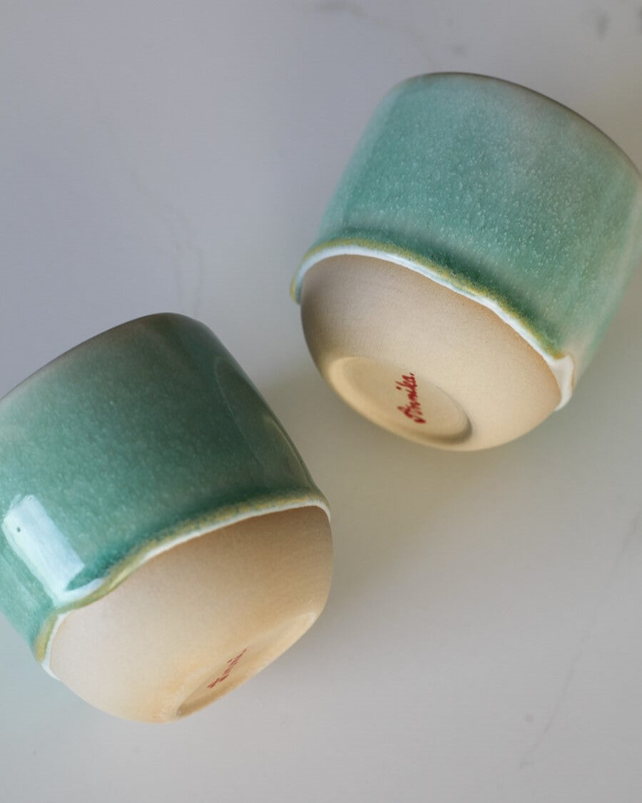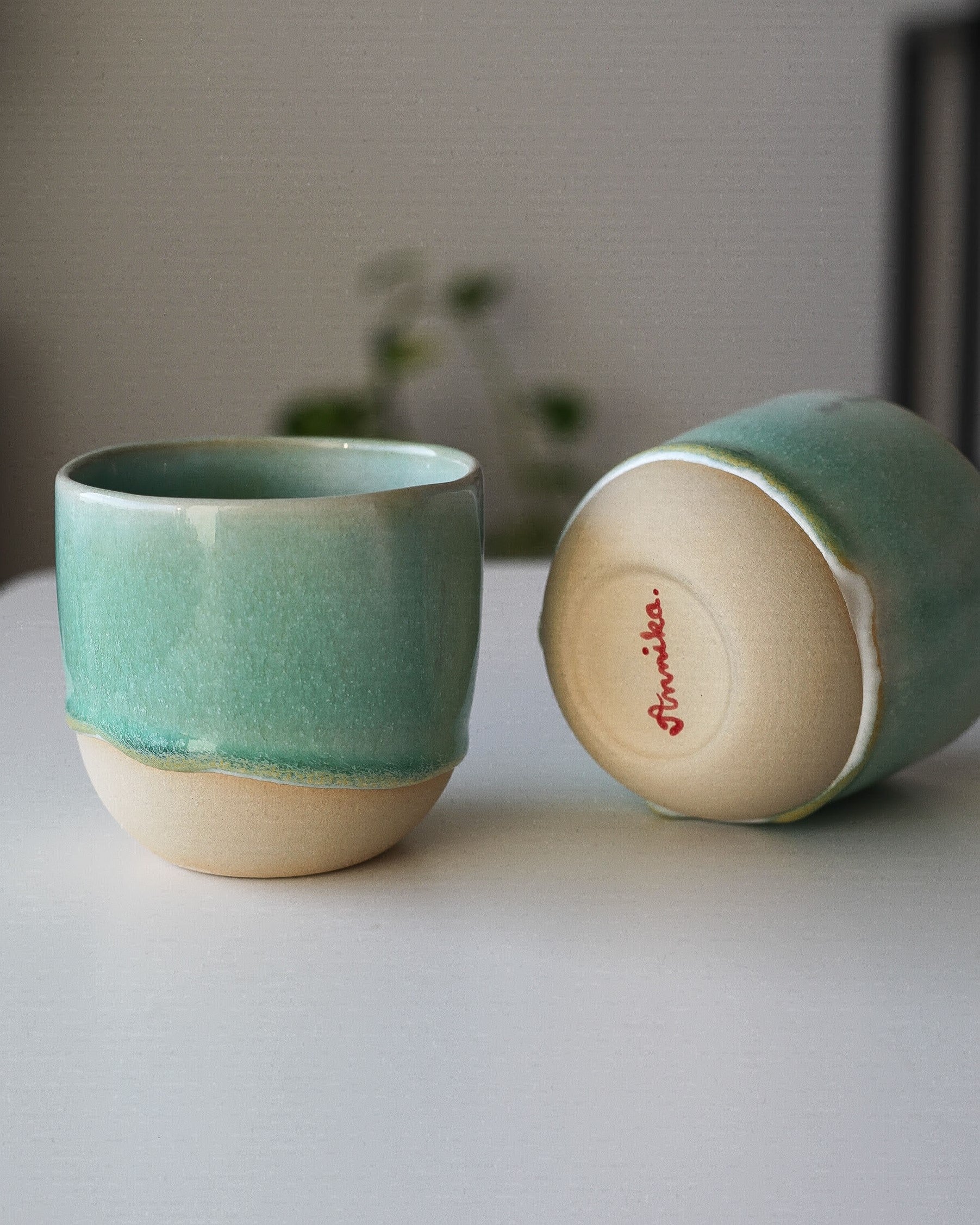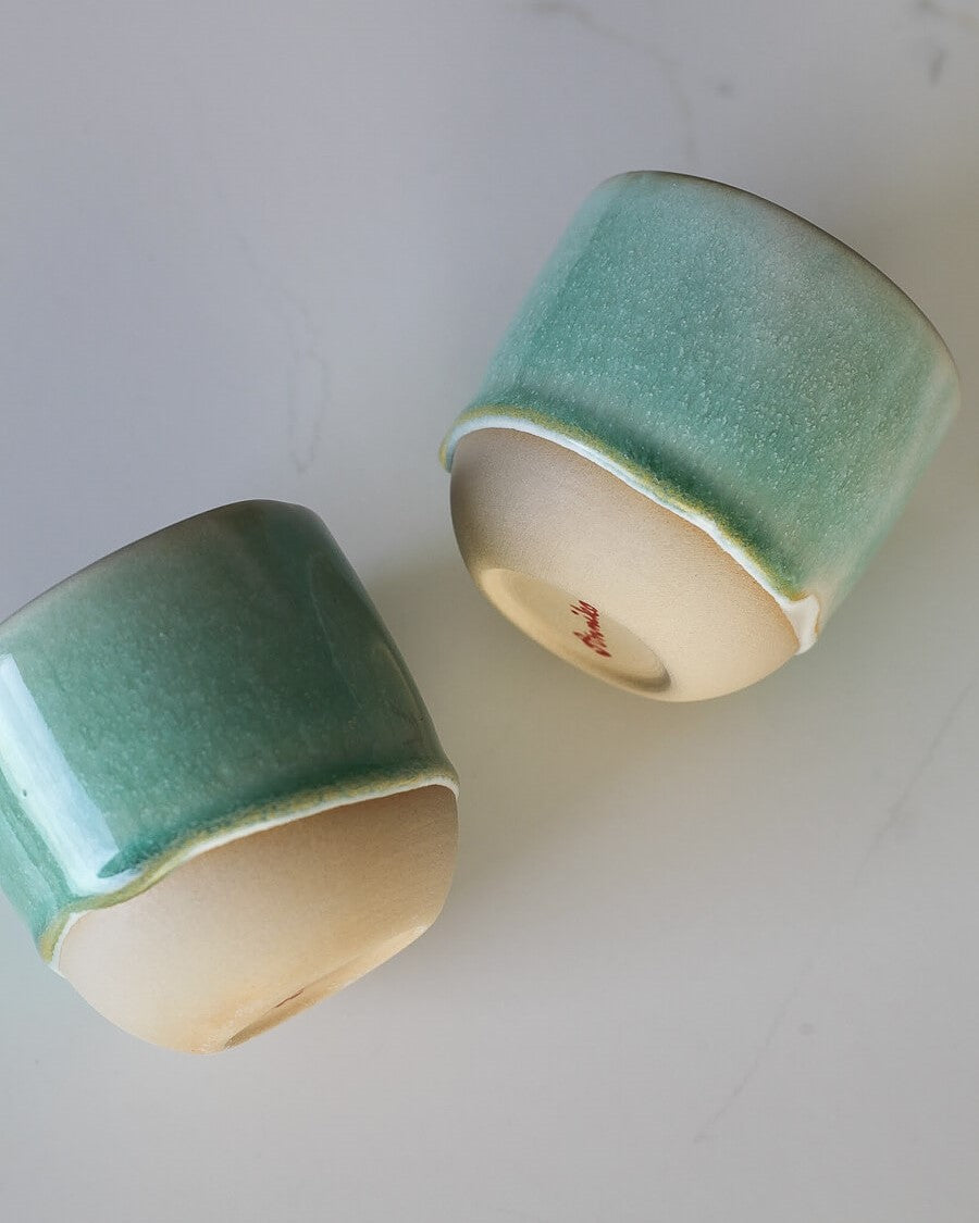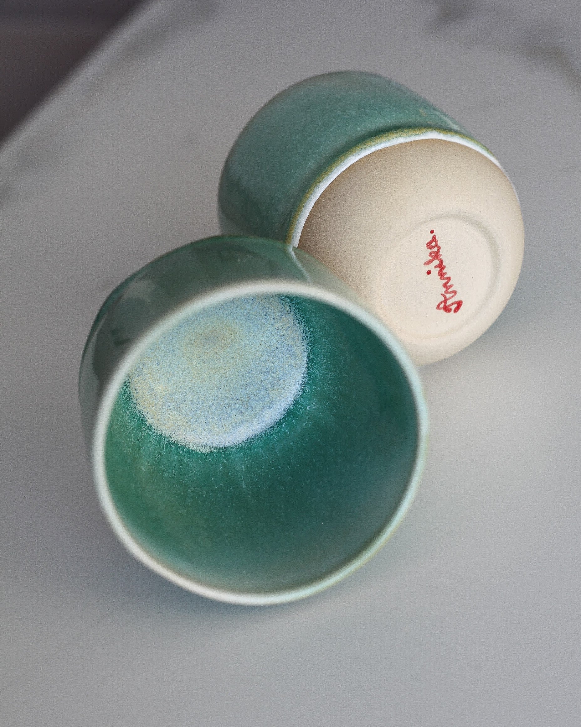 U izradi ovih šalica koristimo kameninu, jako čvrstu i otpornu vrstu gline, kako joj i samo ime kaže.